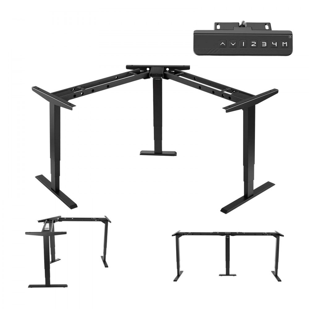 VEVOR in hoogte verstelbaar bureauframe, L-vormig, hoekverstelbaar tafelframe tot 125 kg, 3-traps tafelpoten met 3 motoren, geheugenfunctie, hoogteweergave, stootbeveiliging, USB voor kantoor, zwart