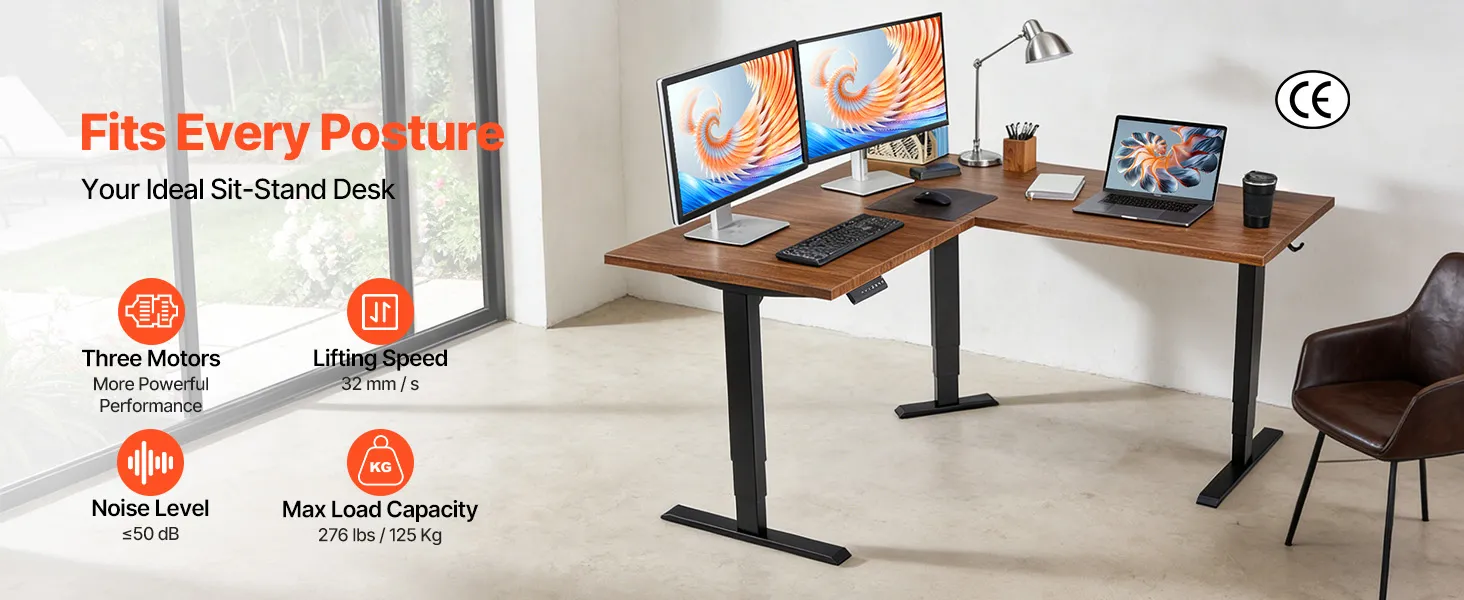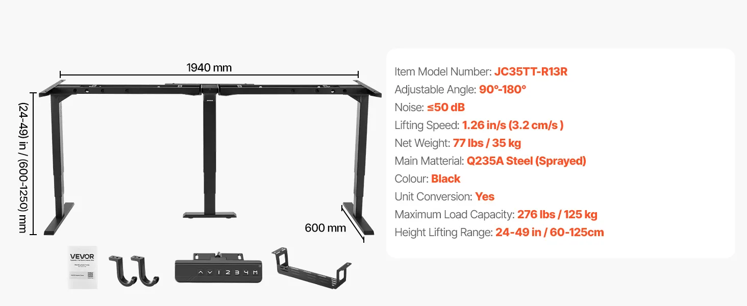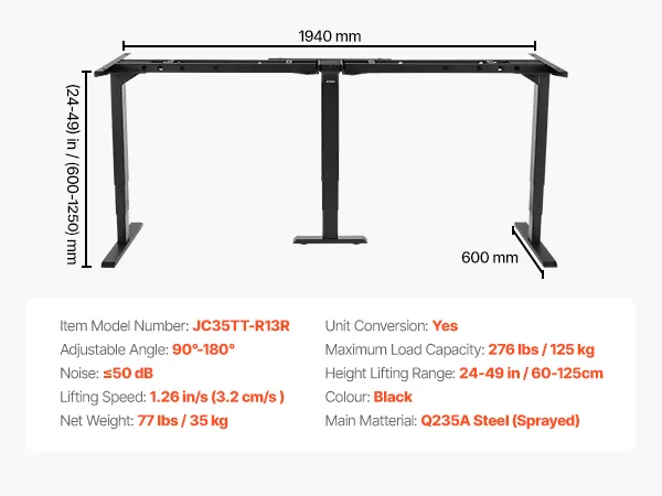 Dit bureauframe is geschikt voor elke positie, beschikt over een stil systeem met drie motoren en kan tot 125 kg dragen, waardoor het een betrouwbare aanwinst is voor uw huis en kantoor.