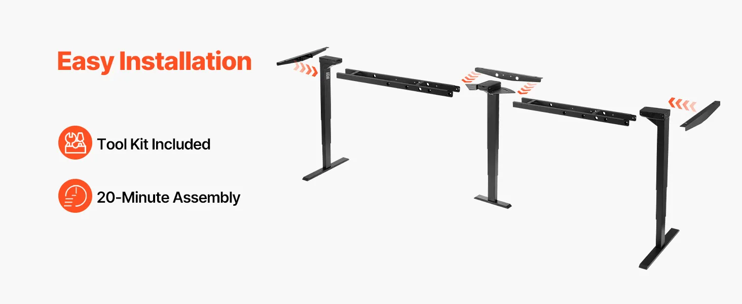Het frame van dit elektrische staande bureau kan snel worden gemonteerd met het meegeleverde gereedschap en minimale schroefkracht, waardoor u tijd en moeite bespaart.