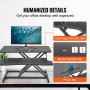VEVOR in hoogte verstelbare bureautoren 800 x 400 mm sta-bureau met brede toetsenbordlade, Quick Sit Stand dubbellaags computerbureau sta-bureauconverter 20 kg belastbaar voor 2 monitoren zwart