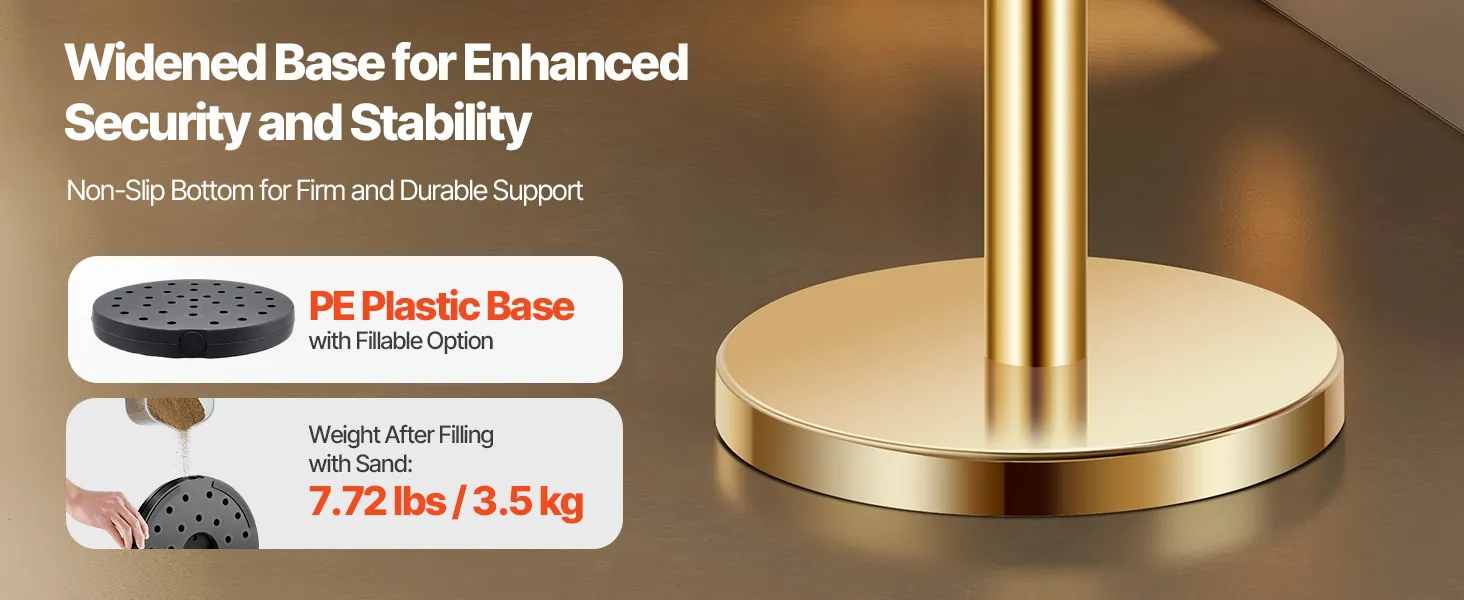 Sturdy & Secure: With a wide, non-slip base and a fillable design, our crowd control barrier is built to last. The fillable base can hold up to 7.72 lbs / 3.5 kg when filled with sand, withstanding both direct sunlight and sudden impacts without fail.