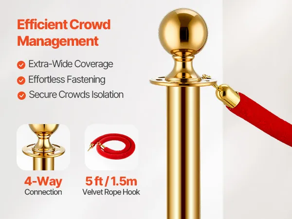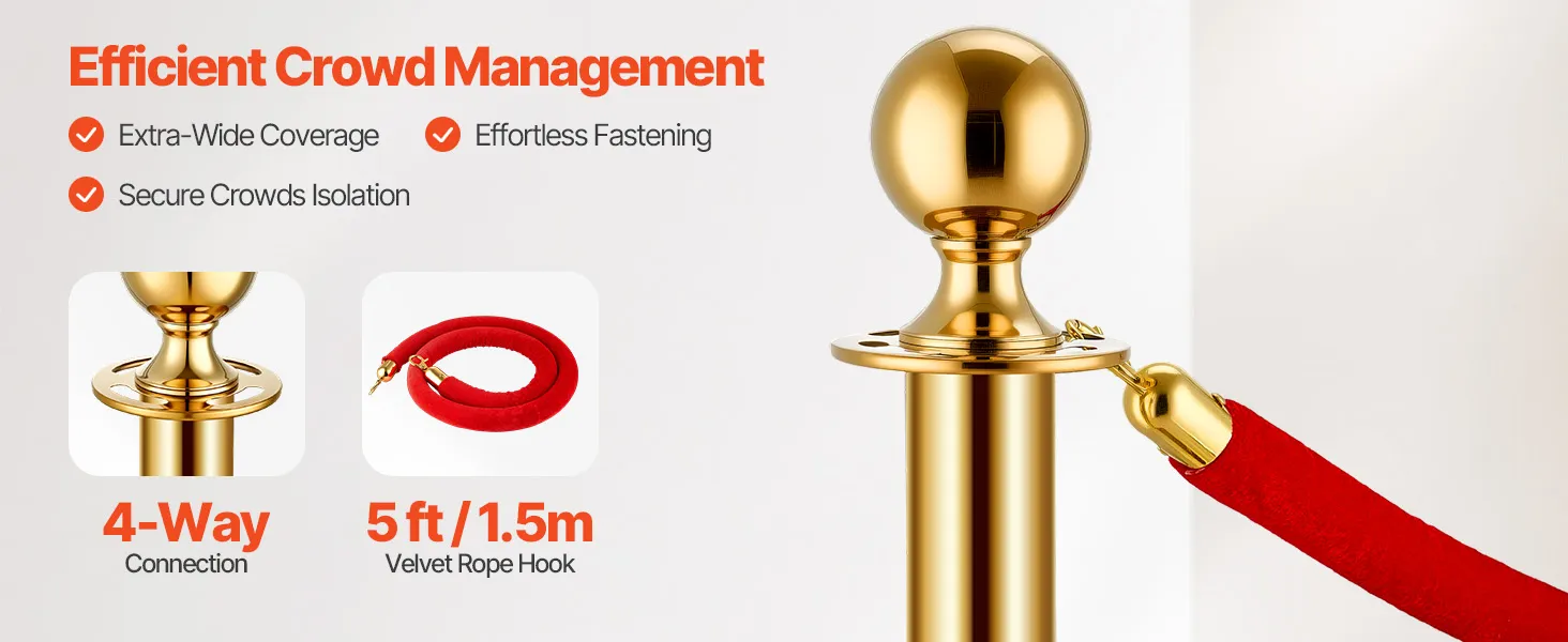 Flexible Setup: Each stanchion posts queue comes with a 4.92 ft / 1.5 m velvet rope and four-way connectors, making it easy to set up and adjust the space however you need. It’s ideal for any occasion—no matter where or how you need to manage your space!