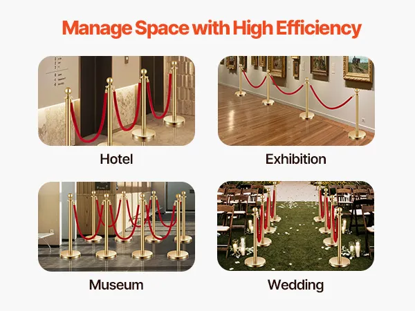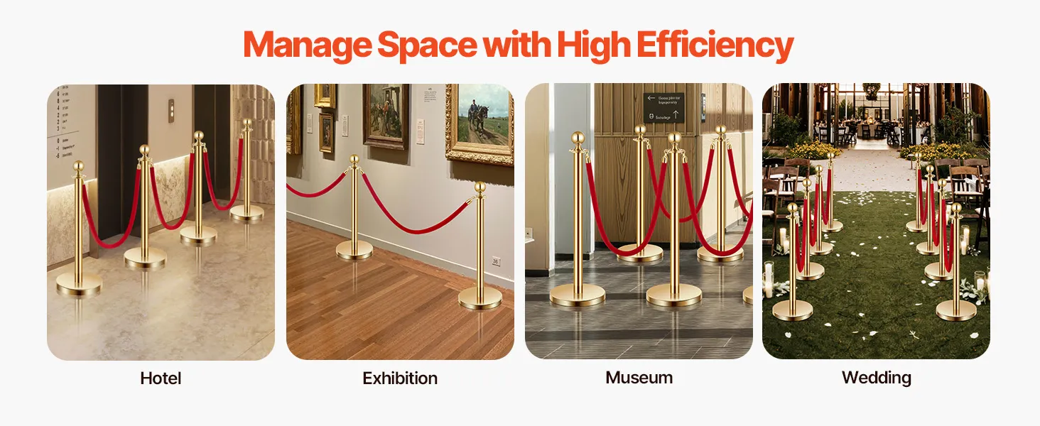 Portable & Versatile: Whether you're managing crowds at a hotel, exhibition, or wedding, this sanctions poles set is designed for flexibility. It's perfect for guiding people, creating clear boundaries, or adjusting your space on the fly.
