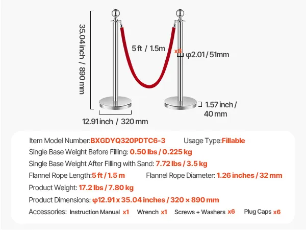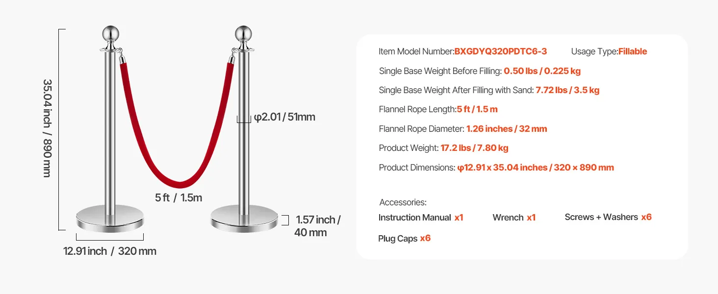 Quick Assembly: No tools required! Simply screw the base into place, fill it with sand, and your velvet rope crowd control is ready to go. Easy to set up and even easier to use whenever you need it.