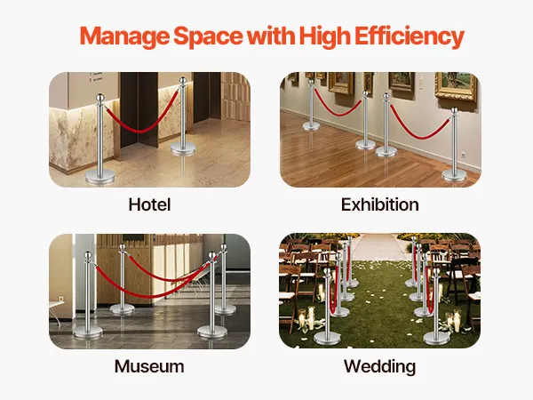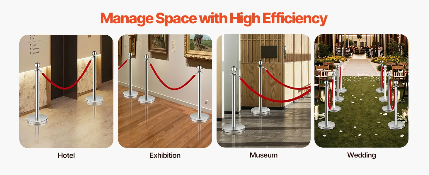 Portable & Versatile: Whether you're managing crowds at a hotel, exhibition, or wedding, this sanctions poles set is designed for flexibility. It's perfect for guiding people, creating clear boundaries, or adjusting your space on the fly.