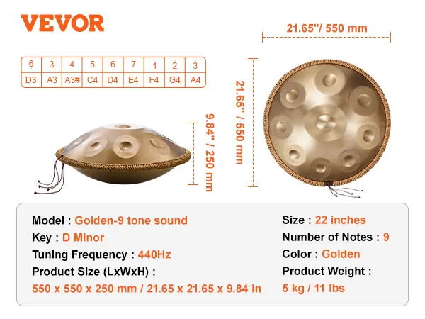 VEVOR 22-inch handpandrum met 9 noten in D mineur