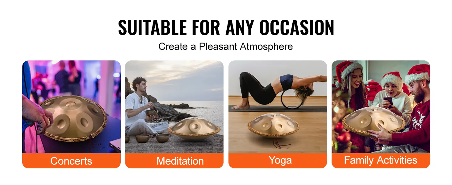 Onze stalen handtrommel is flexibel en geschikt voor verschillende gelegenheden. Of het nu gaat om meditatie, yoga, muziekoptredens of gewoon voor persoonlijk vermaak, het kan u aangenaam kalmerende en ontspannende tonen brengen.