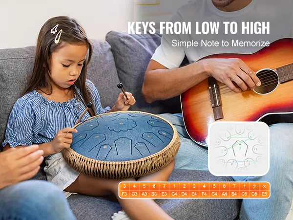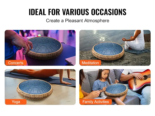 Beginnersvriendelijk instrument: deze stalen tongdrum wordt geleverd met complete accessoires, zodat iedereen hem gemakkelijk kan bespelen. De metalen tong van de essentiële tankdrum trilt en produceert een aangenaam geluid, waardoor hij geschikt is voor kinderen en beginners zonder muzikale ervaring.