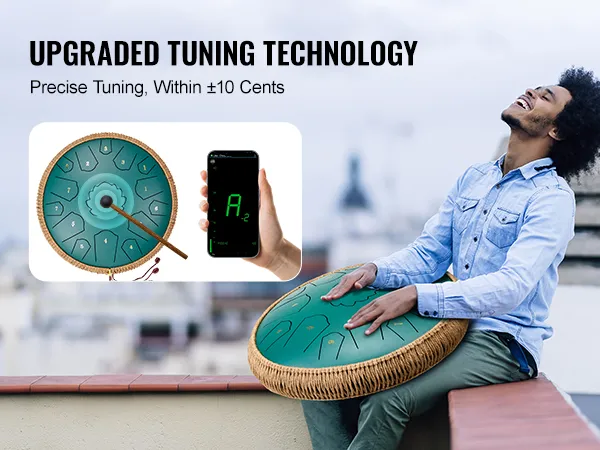 Handcrafted Steel Tongue Drum: This steel tongue drum with 15 Tones and D-key design allow you to play the complex songs and soothing harmonies. Upgraded tuning technology makes the 14-inch steel tongue drum suitable for both professional performance and beginners to use.