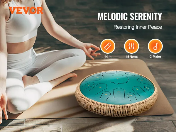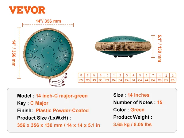 VEVOR 356 mm stalen tongdrum, 15 noten, C majeur