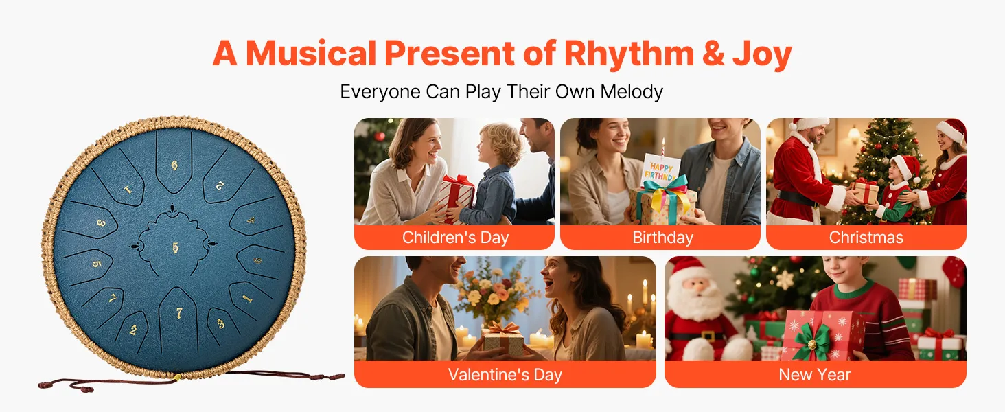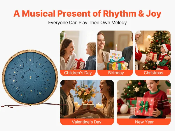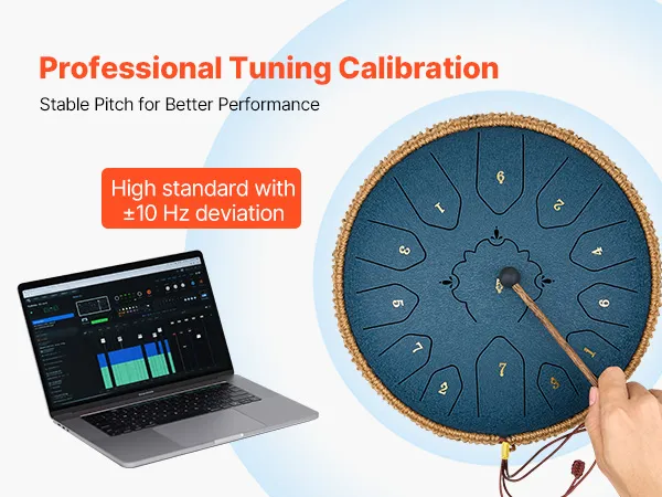 Hoogwaardige toonhoogte: onze tongdrum wordt herhaaldelijk gestemd door professionele stemmers met behulp van precisieapparatuur om nauwkeurige tonen en een zuivere klank te garanderen. Hij wordt gekenmerkt door een hoge stabiliteit en behoudt zijn boeiende melodieën, zelfs na jarenlang gebruik.