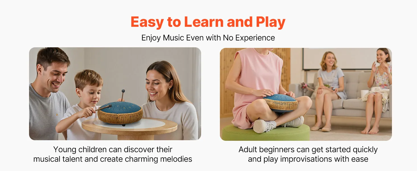 Voorkennis of speelervaring is niet vereist. Trommel gewoon buiten op onze regentrommel en de aangename melodieën vullen de lucht. Dankzij de eenvoudige bediening en het flexibele ritme kunnen zowel kinderen als volwassenen direct de magie van muziek ervaren. Ideaal voor beginnende muzikanten.