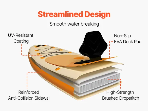 Uitstekende duurzaamheid: het stand-up paddleboard is gemaakt van ultralicht, dubbellaags PVC en weegt slechts 11,4 kg. Het is voorzien van hoogwaardige borsteltechnologie voor extra stevigheid, duurzaamheid en uitstekende slijtvastheid.