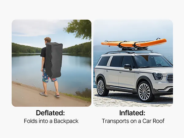 Handig opbergen: Dankzij het lichtgewicht ontwerp en de ruime rugzak is hij gemakkelijk op te bergen in je auto of kofferbak. Of het nu gaat om een korte trip of een lang avontuur, dit stand-up paddleboard is je ideale reisgenoot voor alle wateractiviteiten.