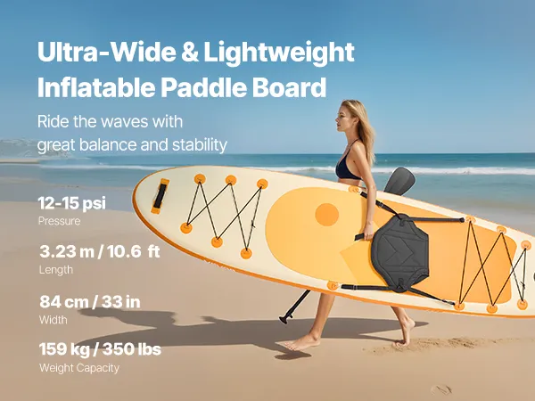 Snel opblazen/leeglopen: Opblazen of leeglopen in slechts 8 minuten met de ingebouwde drukmeter (aanbevolen: 12-15 PSI). Het opblaasbare paddleboard heeft een draagvermogen van 159 kg en is ideaal voor beginners, gevorderde peddelaars, kinderen en tieners.