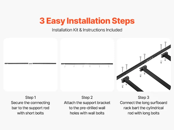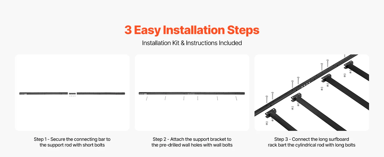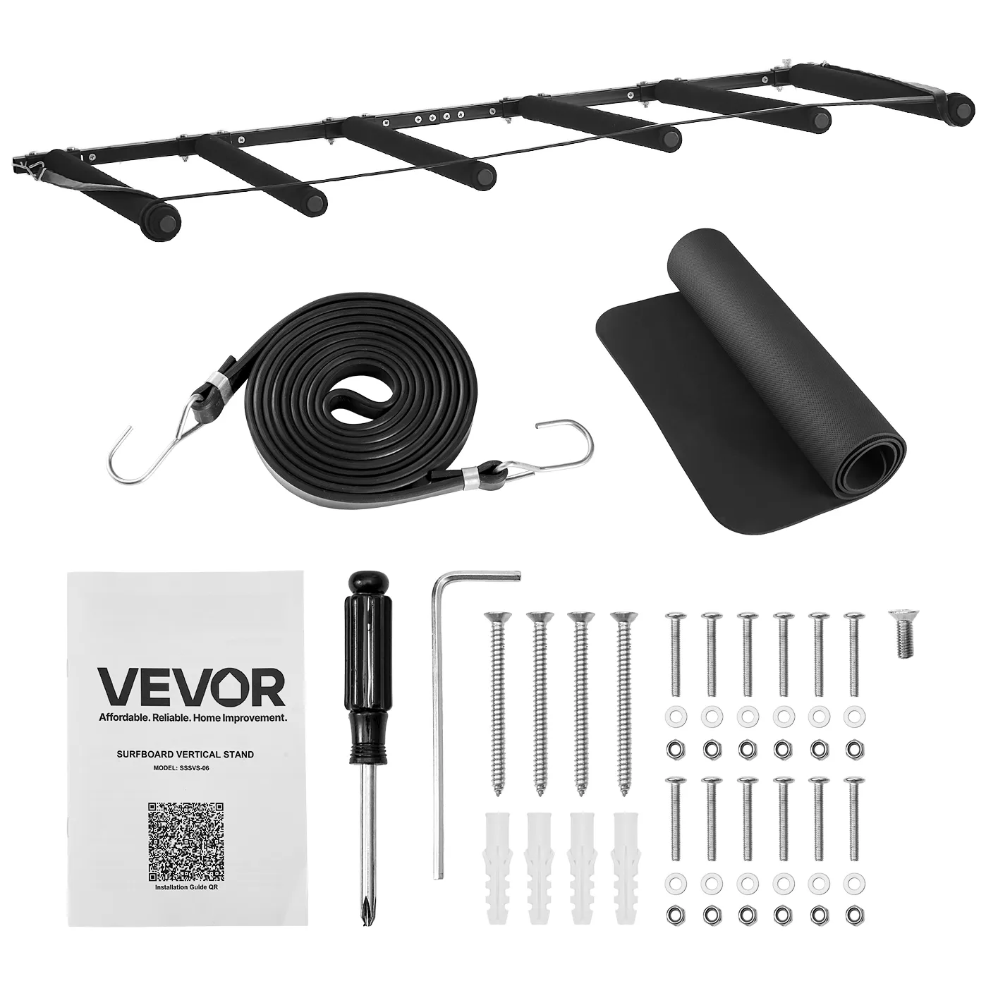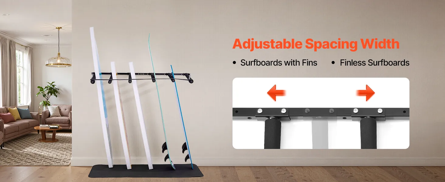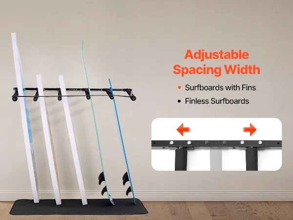 Deze surfplank-muurbeugel is ideaal voor watersporters, surfers, skiërs en wakeboarders. Dankzij de 115 cm lange steunbalk kun je de plankafstand aanpassen aan verschillende boards, zoals surfplanken, ski's, kiteboards en skateboards, zodat alles georganiseerd blijft. Gemaakt van hoogwaardig koolstofstaal, is hij duurzaam, gemakkelijk schoon te maken en heeft hij een strak, functioneel ontwerp.