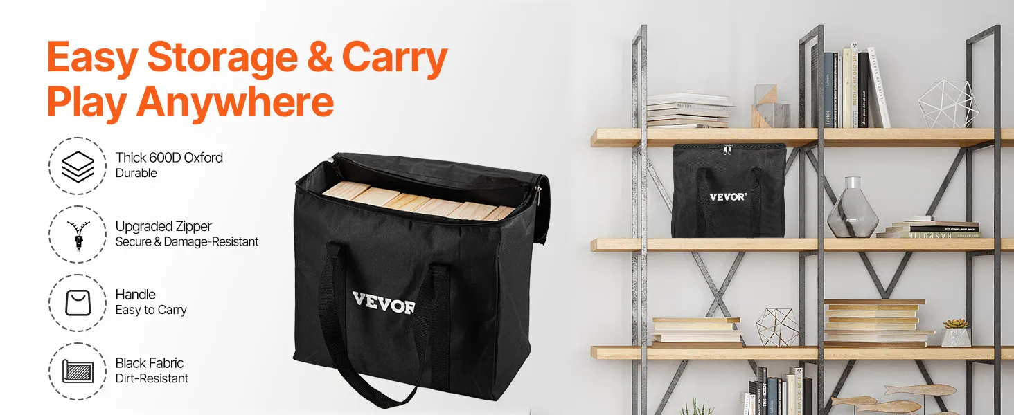 Easy Storage and Portable: Our wood stacking game comes with a zipper carry bag, an erasable score board, and a marker pen. The carry bag is ideal for storage and convenient for on-the-go fun. Note: Store it in a dry place when not in use to extend its lifespan.