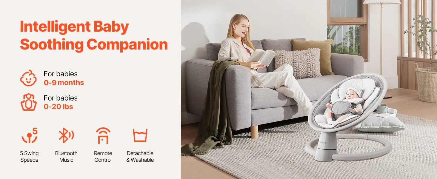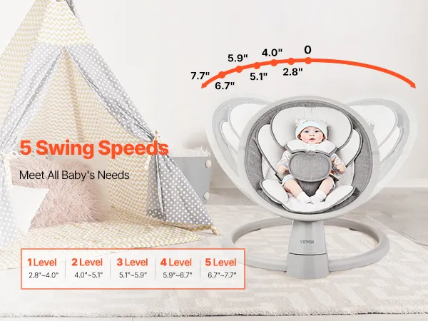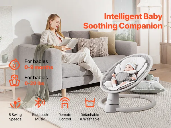 Accompany Baby's Growth: This baby swing offers 5 gentle swing speeds, designed to quickly calm and soothe babies. Ideal for boys girls 0-9 months or up to 20 lbs. (PLEASE NOTE: This product is not for sleep or unsupervised use. Stay near and watch baby during use. Never leave infant unattended. Never use on soft surface (bed, sofa, cushion), as seat may tip over and cause suffocation.)