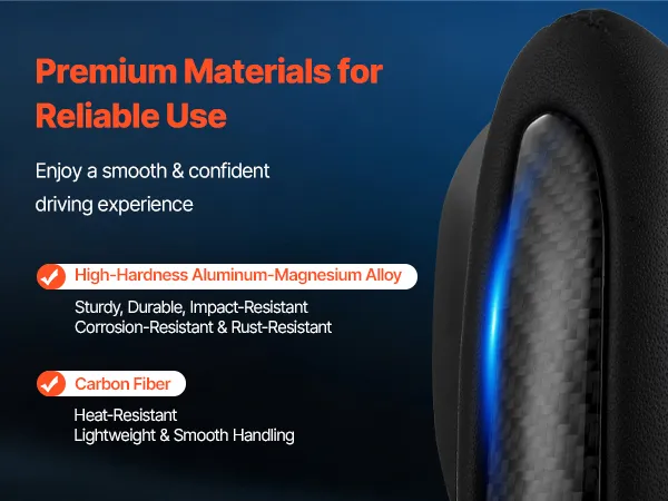 Ons stuurwiel van koolstofvezel is gemaakt van een zeer sterke aluminium-magnesiumlegering en is robuust, duurzaam, slagvast en corrosiebestendig. Het koolstofvezelmateriaal is hittebestendig en licht van gewicht, wat de wegligging verbetert en de rijveiligheid verhoogt.