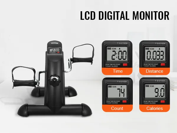 Geeft tijd, aantal, calorieën en afstand weer (in meters). Ook beschikt deze mini hometrainer over een scanfunctie die alle metingen één voor één weergeeft, waardoor je makkelijker jouw fitnessgeschiedenis kunt bijhouden.