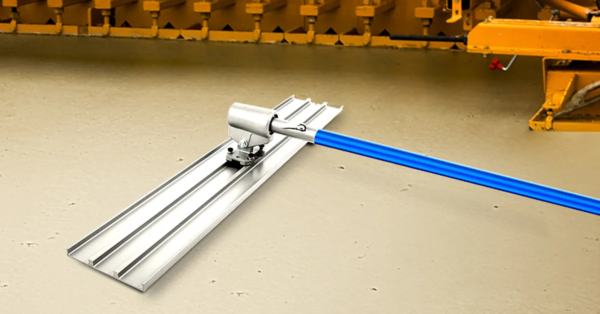 Het troffelblad van magnesium en aluminiumlegering, niet-hervormd en glad van oppervlak. Stevige montagebasis stevig en duurzaam. De bull float tool met gecoate handgrepen kan de afwerking gemakkelijk aan.