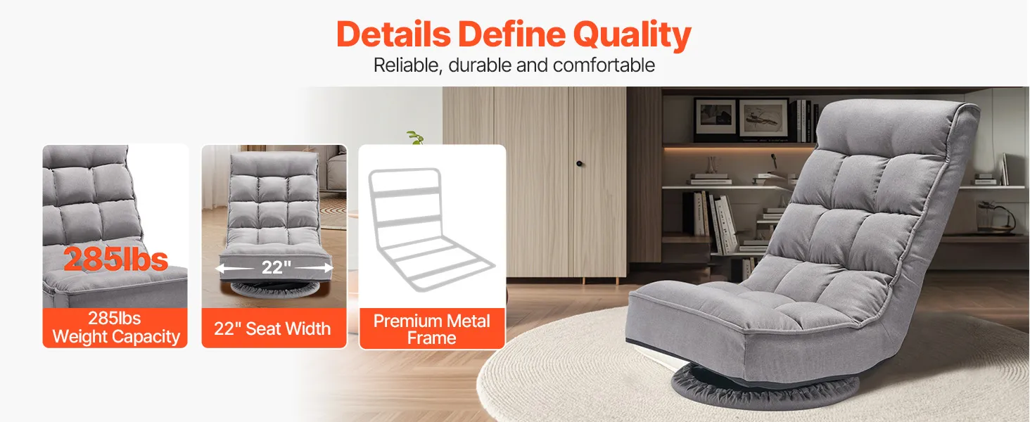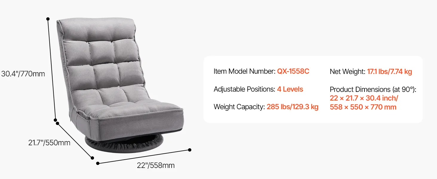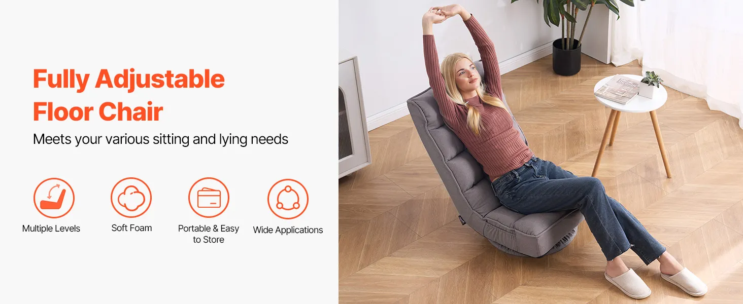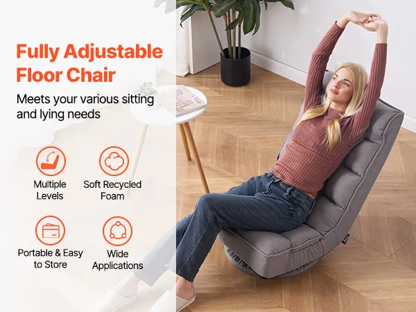 Versatile Use: The flexible adjustments of this floor chair make it ideal for various scenarios, whether it's for daily relaxation, reading, watching movies, gaming, or working from home.