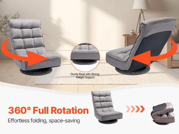 VEVOR Swivel Floor Gaming Chair, 360-Degree Rotating Floor Chair with 4 Adjustable Position Folding Backrest and Lumbar Support, Folding Video Reclining Sofa for Watching TV Reading Playing Game, Gray