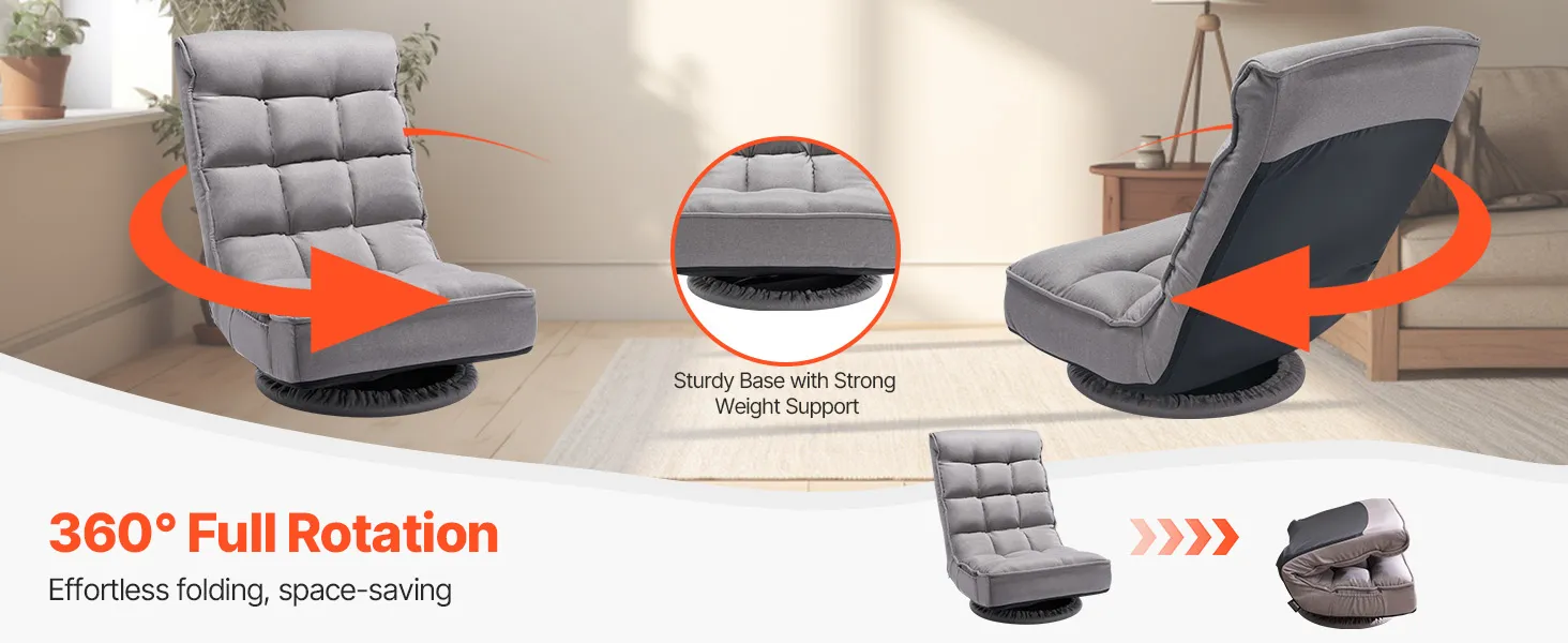 360° Swivel & Foldable: This floor gaming chair features a 360° swivel function, allowing you to easily adjust your sitting direction without having to stand up. Its lightweight, foldable design makes it quick to set up or store, providing easy portability and space-saving convenience.