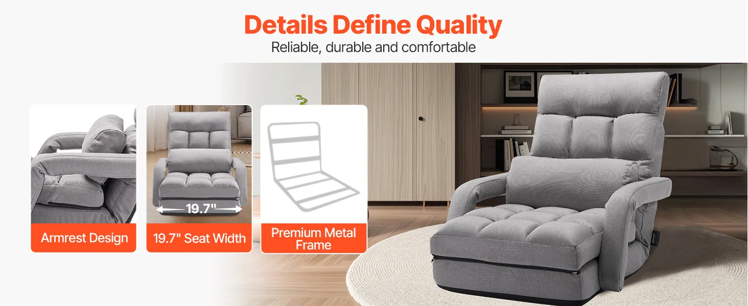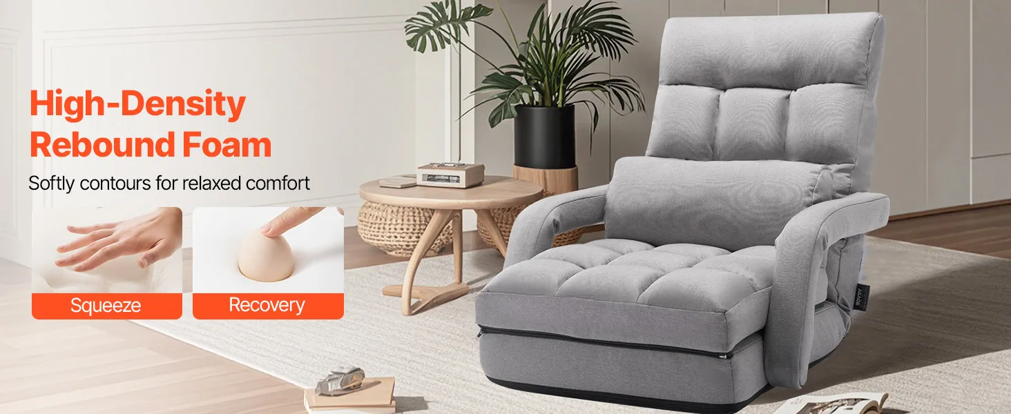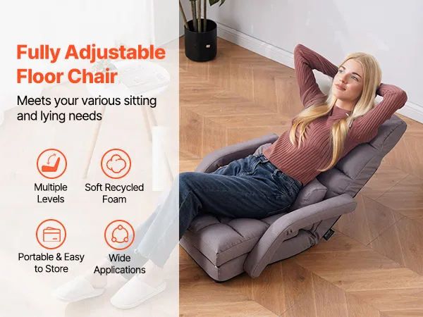 Versatile Use: This folding floor chair features adjustable positions for sitting or reclining, making it ideal for relaxation, reading, watching movies, gaming, or working from home.