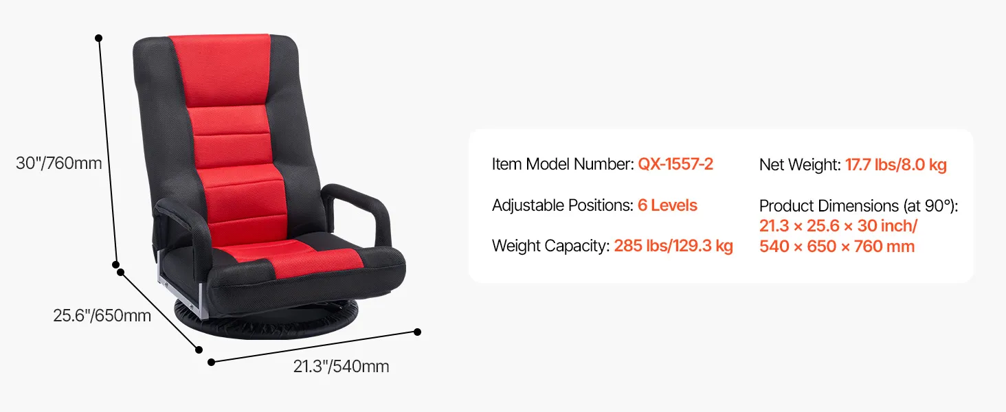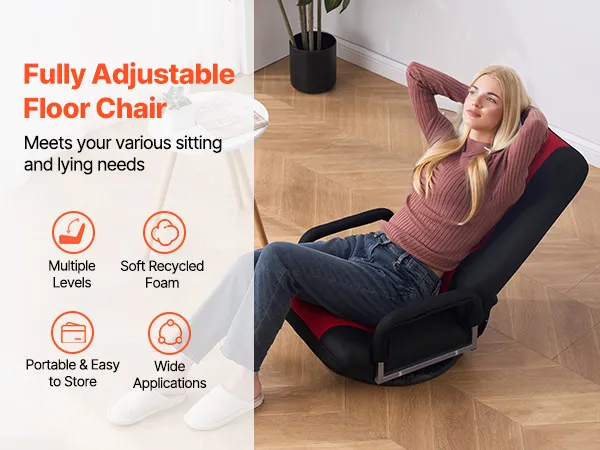Versatile Use: The floor chair’s flexible adjustment options make it suitable for a variety of scenarios, ideal not only for daily relaxation and reading but also for watching movies, gaming, or working from home.