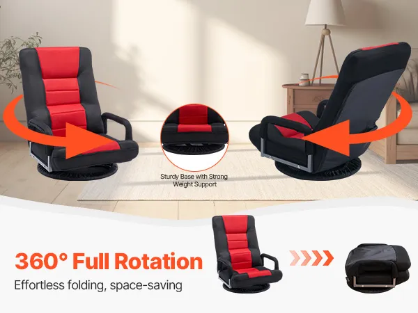 360° Swivel & Foldable: This floor gaming chair features a 360° swivel function, allowing you to easily adjust your sitting direction without having to stand up. Its lightweight, foldable design makes it quick to set up or store, providing easy portability and space-saving convenience.