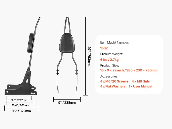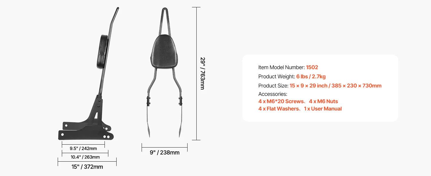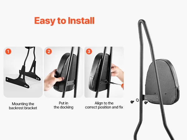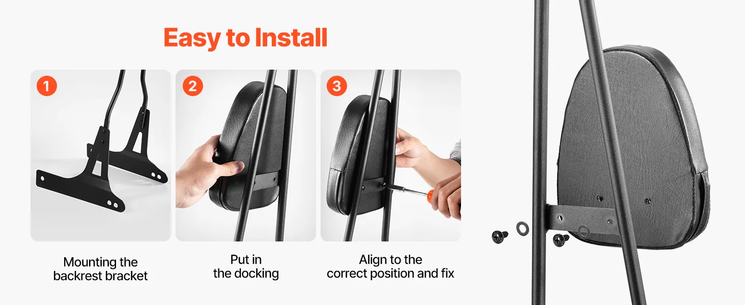 Eenvoudige installatie: Deze afneembare sissybar voor motorfietsen is eenvoudig te installeren en te demonteren. Het wordt geleverd met installatie-instructies, zodat u de rugleuning binnen enkele seconden na montage kunt bevestigen of verwijderen