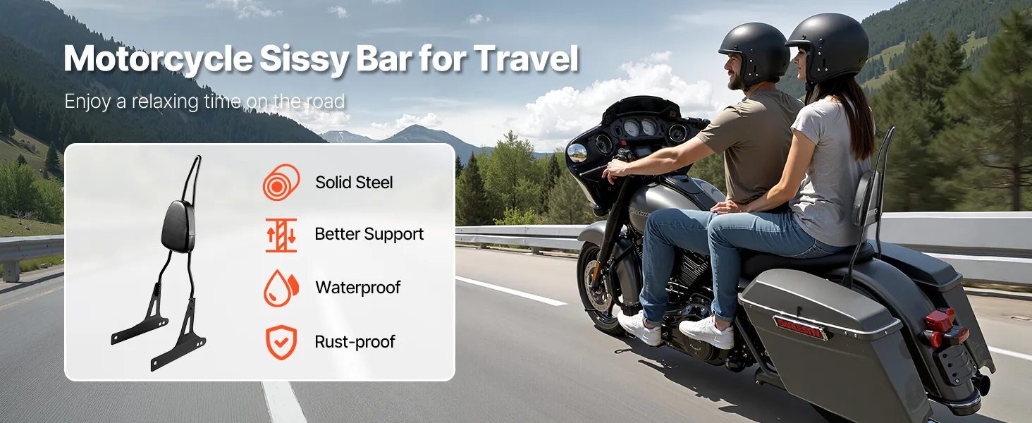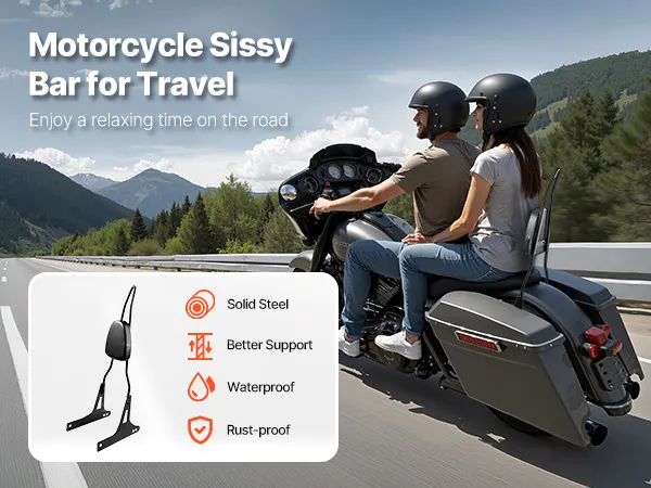 Dankzij de strakke, klassieke look is deze sissybar voor op de motor meer dan alleen een functioneel accessoire - het is een stijlvolle upgrade voor uw motor. Ideaal voor kamperen, lange roadtrips en buitenavonturen – voor meer plezier en comfort tijdens het rijden.