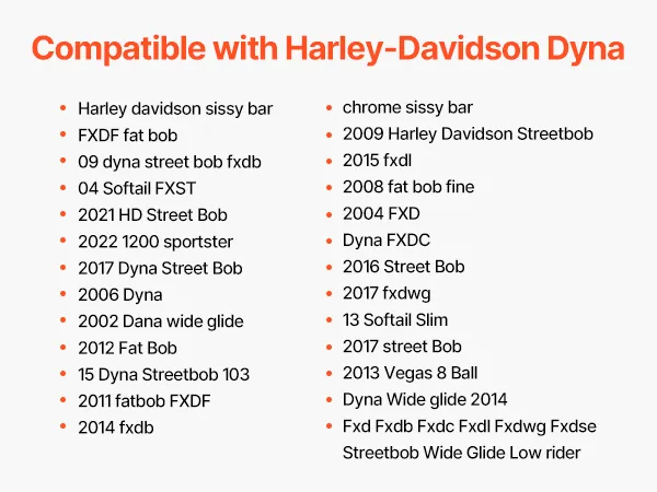 Brede compatibiliteit: Deze sissybar voor de rugleuning van een motorfiets is compatibel met Harley-Davidson Dana. Wordt geleverd met de benodigde dockinghardwarekit. Controleer uw model en bouwjaar voordat u tot aankoop overgaat