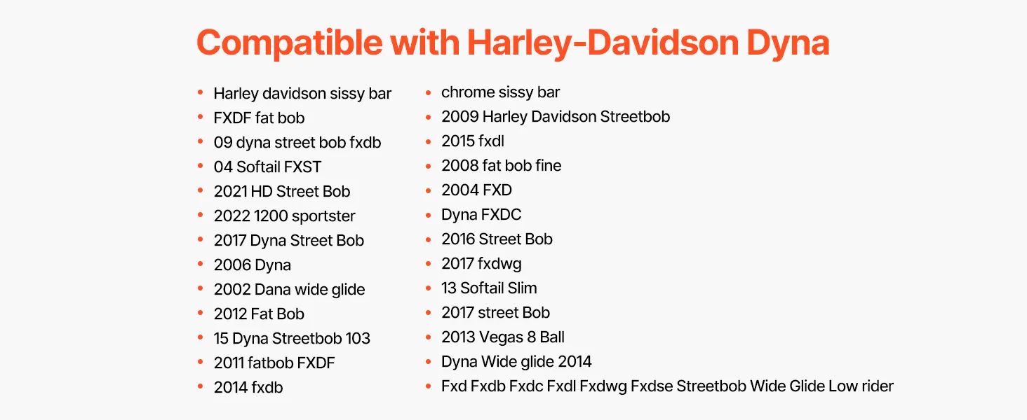 Onze afneembare passagiersrugsteun is compatibel met de Harley-Davidson Dana. Het bevat de benodigde dockinghardwarekits. Controleer het model en bouwjaar voordat u tot aankoop overgaat.