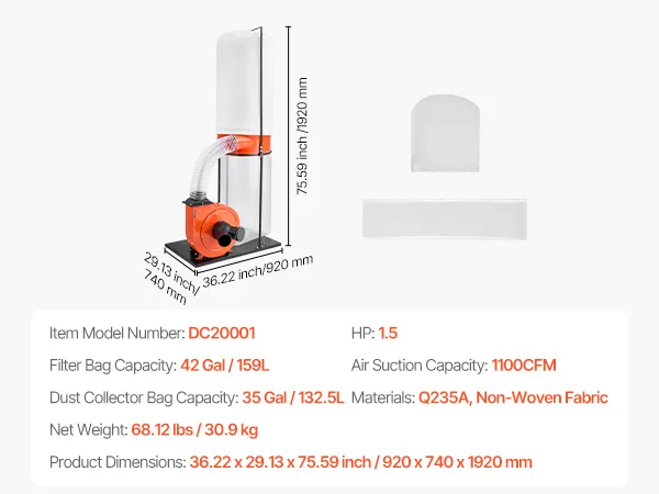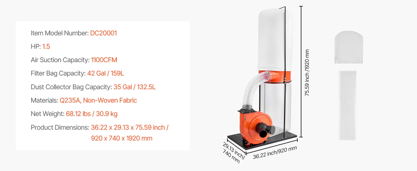 Grotere opvangzak: Uitgerust met een fleecezak van 159 liter, vangt dit stofafzuigsysteem voor houtbewerkingswerkplaatsen meer stof en vuil op in één werkgang. Perfect voor continue kleine tot middelgrote houtbewerkingswerkzaamheden, minimaliseert de uitvaltijd en verhoogt de productiviteit in drukke werkplaatsen.