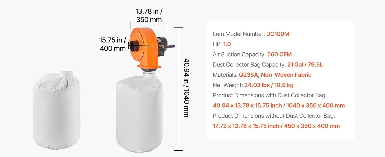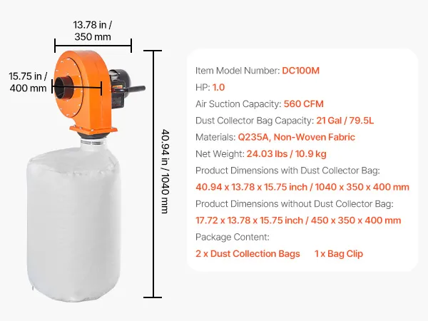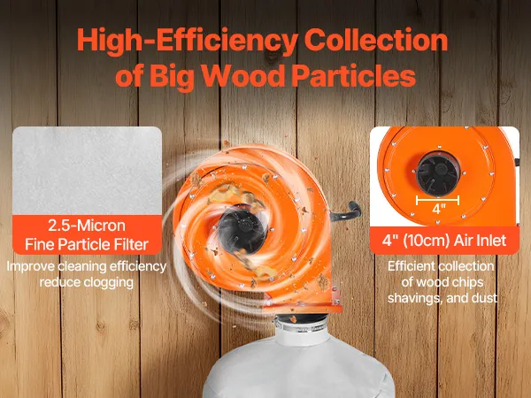 Grote stofzak: Uitgerust met een fleece opvangzak van 79,5 liter, kan onze houtstofzuiger grotere hoeveelheden stof en vuil per gebruik opvangen. Ideaal voor middelgrote en kleine houtbewerkingsprojecten, vermindert het aantal schoonmaakpauzes en zorgt het voor een soepele, ononderbroken workflow.