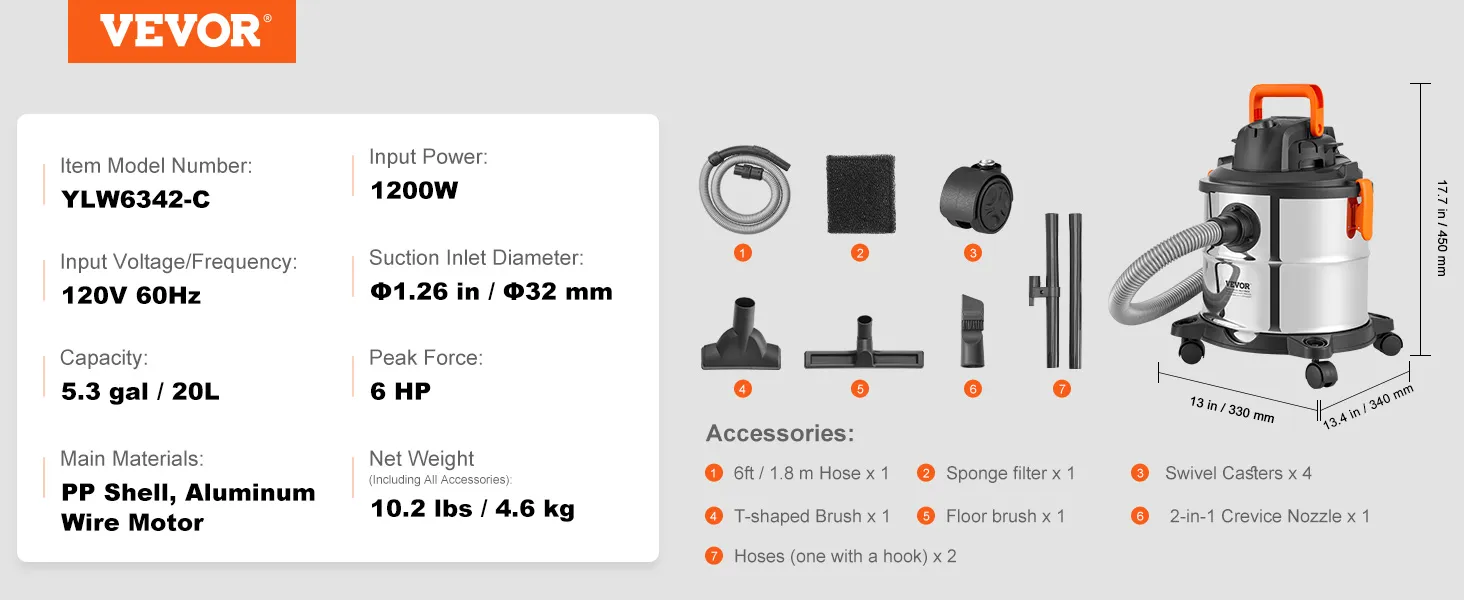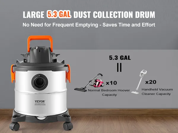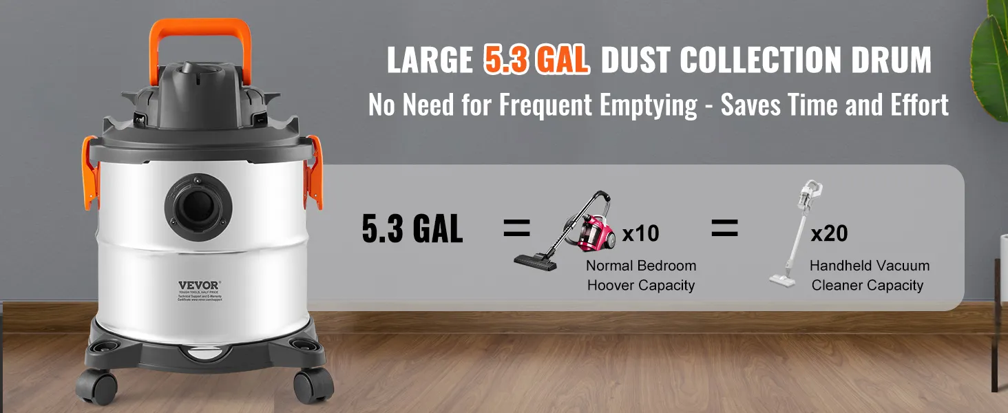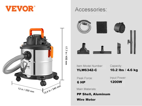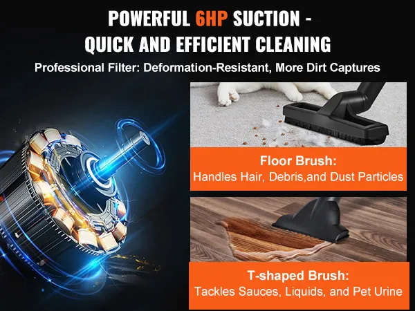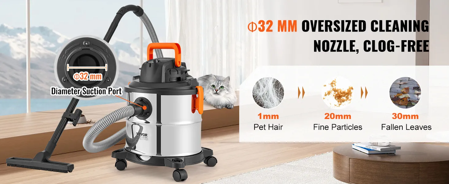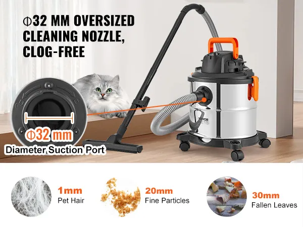 Hoge zuigkracht: bereik ongekende reinigingssnelheden met onze roestvrijstalen stofzuiger met hoge zuigkracht en een piekvermogen van 6 pk. Het kan gemakkelijk stof, vuil, haren van huisdieren en zelfs gemorste vloeistoffen binnenshuis verwerken.