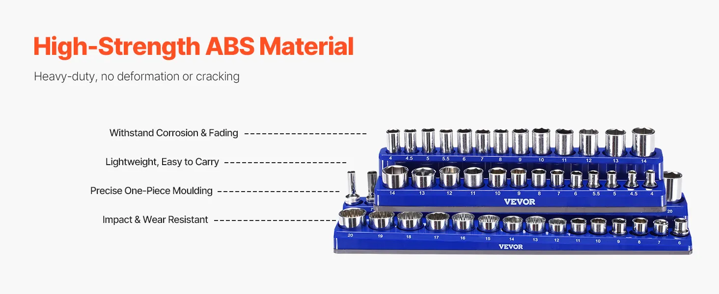 Built to Last: Made from reinforced ABS material, our socket organizer tray resists impact and wear. The clear size labels won’t fade over time, ensuring long-lasting convenience.