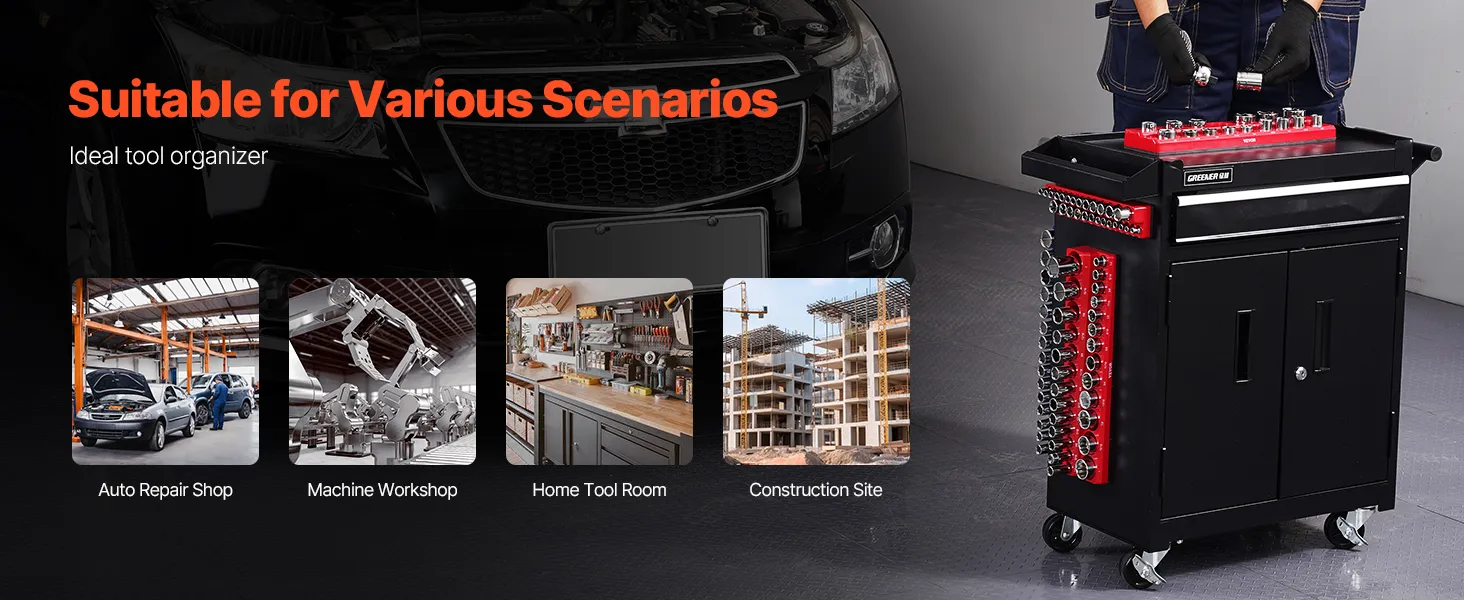 Our socket holder kit is suitable for a variety of settings, such as auto repair shops and manufacturing facilities. It can attach to vehicles or machinery, offering a temporary workspace and boosting productivity.