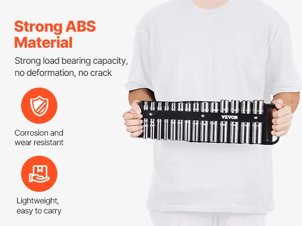 Made from lightweight, high-strength ABS material, the portable organizer for sockets is easy to transport anywhere, whether to job sites or repair shops.