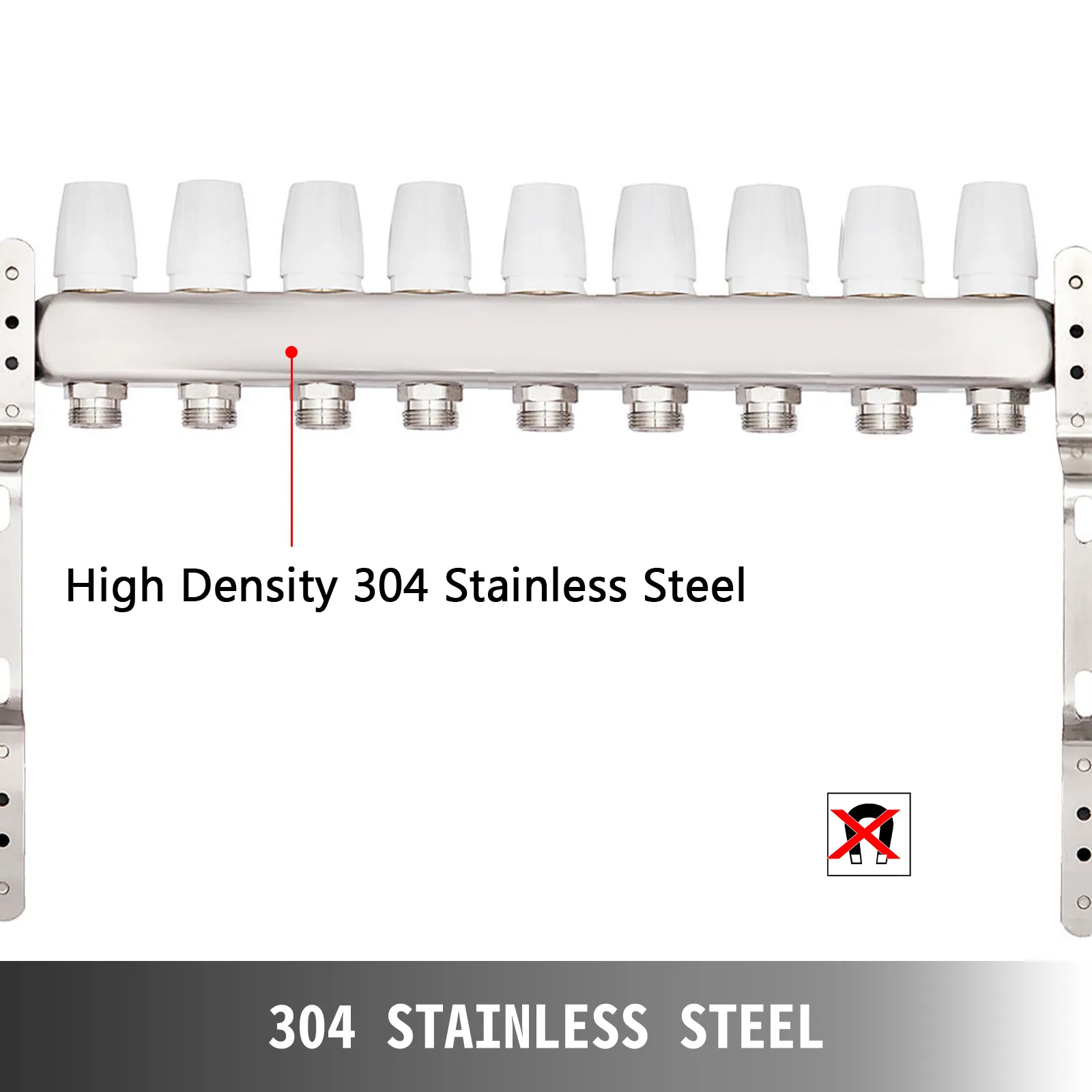 Het PEX-verdeelstuk is gemaakt van 304 roestvrijstalen behuizingsmateriaal, dat bestand is tegen corrosie en druk en een lange levensduur heeft. Het spruitstuk heeft de druktest doorstaan en is voorgemonteerd voor installatie. Het precieze ontwerp maakt uw hydraulisch systeem vrij en de bedieningsdetails maken uw keuze de moeite waard.