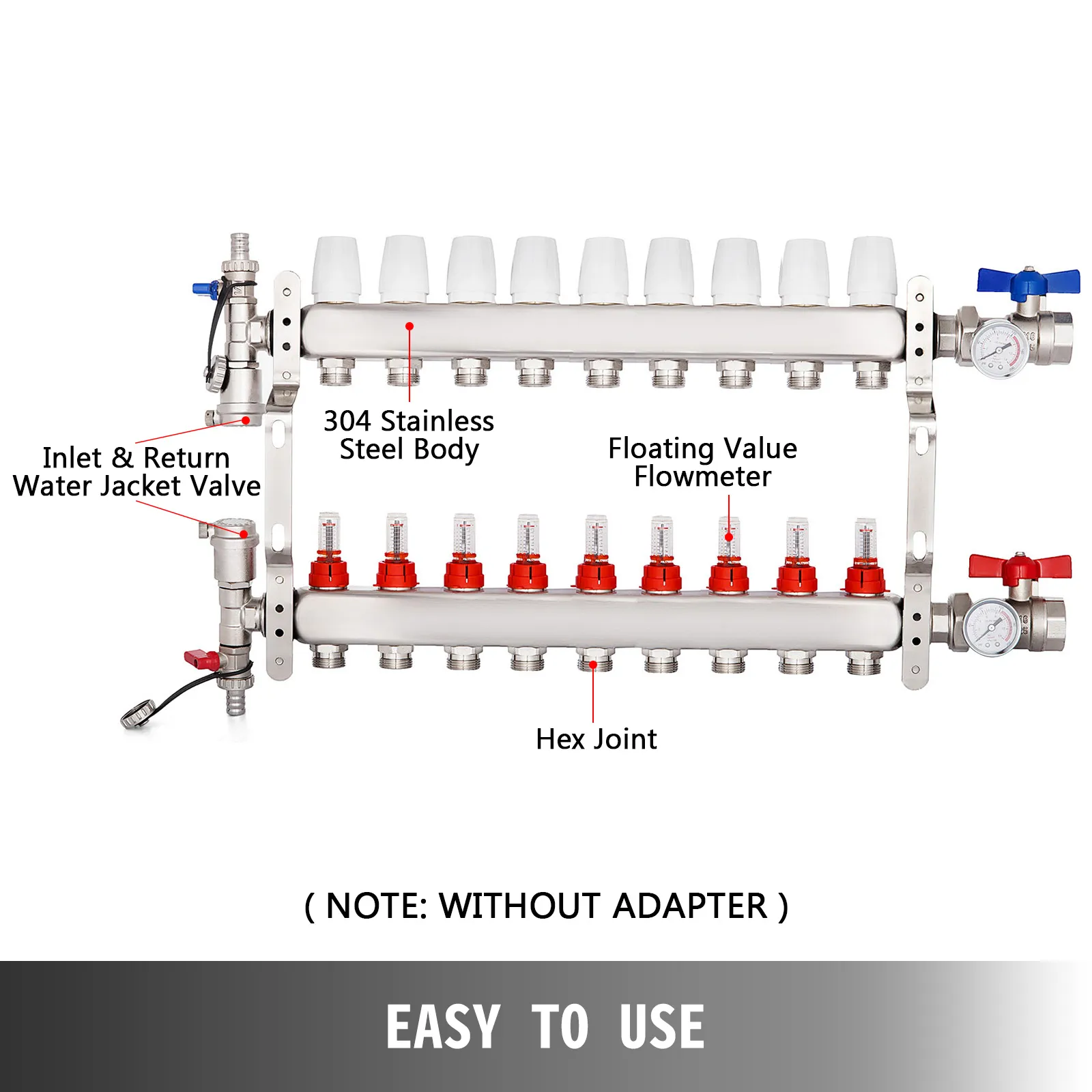 【STERKE COMPATIBILITEIT】- Het PEX-spruitstuk met 9 lussen is compatibel met alle soorten PEX-buizen. Er is geen speciale adapter nodig. Geen 5/8" adapters / knelmoeren.