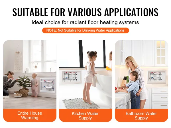 Efficient Heating Starts Here: Engineered for radiant floor heating systems, this hydronic radiant heat manifold ensures consistent and even heat distribution across your entire space. VEVOR radiant heat pex plumbing manifold is suitable for both residential and commercial applications, delivering dependable performance and optimal heating efficiency.