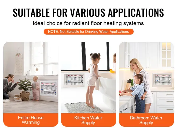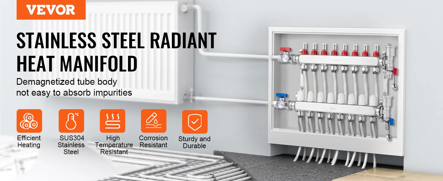 Efficient Heating Starts Here: Engineered for radiant floor heating systems, this hydronic radiant heat manifold ensures consistent and even heat distribution across your entire space. VEVOR radiant heat pex plumbing manifold is suitable for both residential and commercial applications, delivering dependable performance and optimal heating efficiency.
