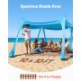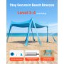 Ruime schaduwplek: Deze strandtent biedt een schaduwplek van 3 x 3 x 2 meter, ideaal voor gezinnen of groepen van 4 tot 7 personen. Dankzij de meegeleverde zandzakken en zandschep is de tent snel en eenvoudig op het strand op te zetten.
