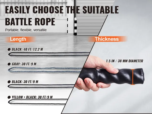 VERSCHILLENDE MATEN OM TE KIEZEN: Wij bieden 30 voet (9,1 m) lange gevechtstouwen met een diameter van 1,5 inch (38 mm). Langere gevechtstouwen zijn ideaal voor fitnessprofessionals, terwijl kortere gevechtstouwen perfect zijn voor beginners voor de dagelijkse thuistraining. Kies op basis van uw behoeften.