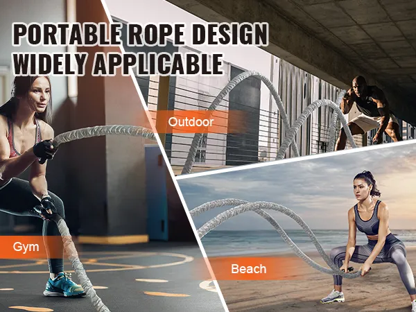 GEBRUIKERSVRIENDELIJK ONTWERP: De robuuste touwen voor thuisgymnastiek rollen gemakkelijk op voor compacte opslag en zijn ontworpen voor transport. Ze kunnen worden gebruikt voor op- en afdalingen, trek- of klimoefeningen - ook wel gevechtstouwen, trainingstouwen of trainingstouwen genoemd.