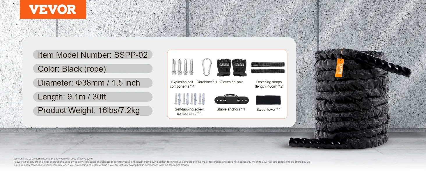 User-Friendly Design: The heavy ropes for home gym can be easily rolled up for compact storage and is designed for portability. It can be used for up-and-down, pulling, or climbing exercises - known as combat ropes, workout ropes, or training ropes. To prevent palm bruises or calluses, we include gloves as a gift, and a sweat towel is also added in the packaging for your convenience.