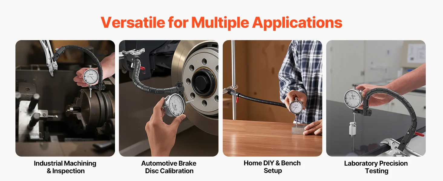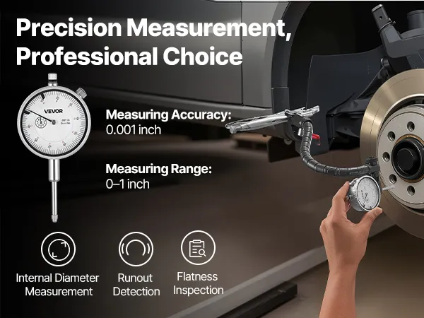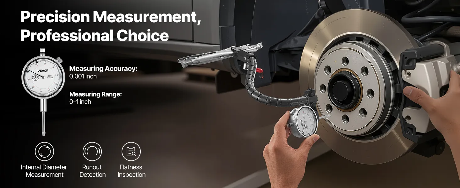 Van werkplaats tot thuisprojecten, deze meetklok is geschikt voor een breed scala aan precisietaken, waaronder remschijfkalibratie, slingeringstesten en laboratoriummetingen. Hij is eenvoudig te installeren en presteert betrouwbaar in alle omstandigheden.